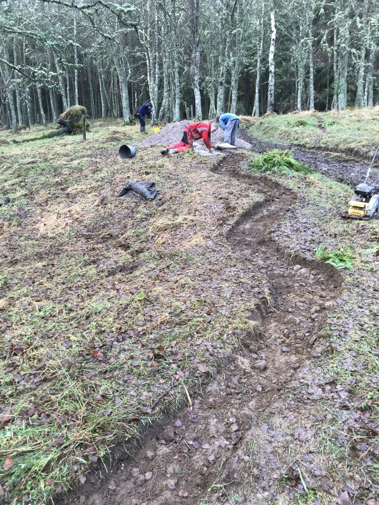 Early progress today on the new path from Taits Brae leading up to Creag Bheag. This new route avoids the existing track which is currently more of a drain than a track.