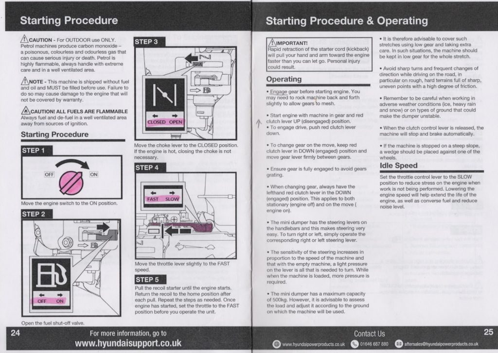 - Power barrow – operators should be familiar with the operating instructions (attached below) prior to using the machine.