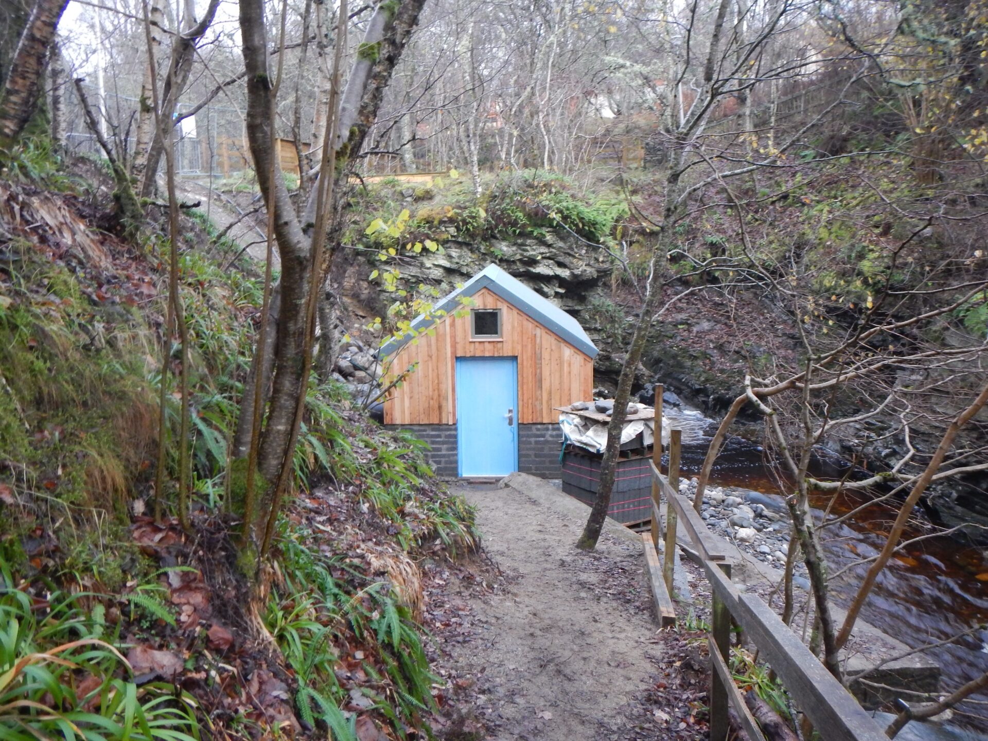 The hydro is situated on the Gynack in Kingussie at a narrow gorge where there is a spectacular waterfall. Its output is about 40,000 kWh per year but this varies depending on summer droughts and winter freezes. The river is also prone to spates, and during construction in 2014, the aftermath of Hurricane Bertha caused significant flooding in Kingussie. The hydro survived.