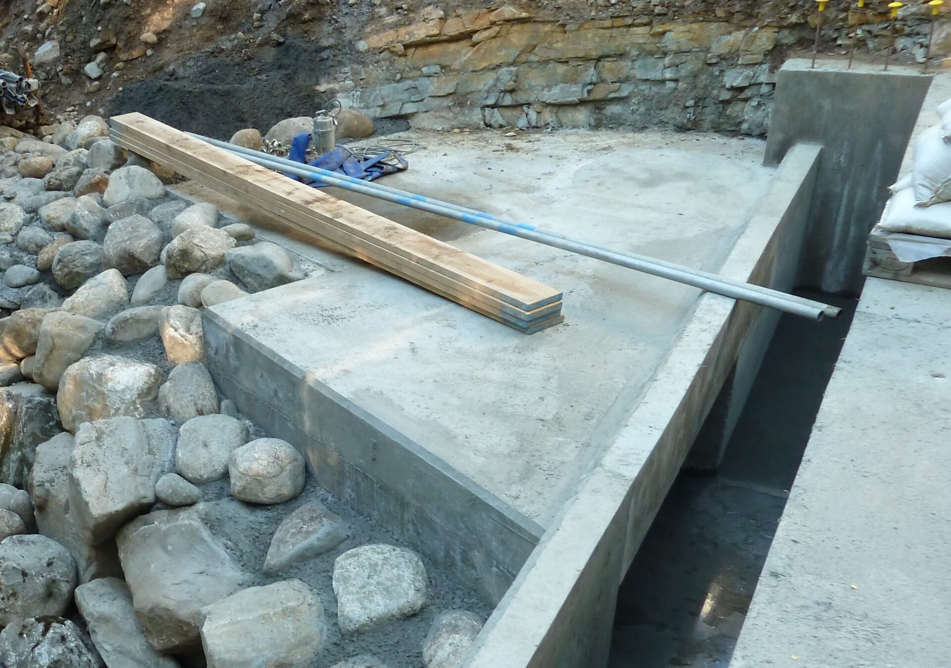 The purpose of the settling chamber, is to remove turbulence and air that arises from the flow through the Coanda screen, thus allowing water to flow smoothly down to the turbine. It also allows any sediment that settles out to be collected and flushed out a side pipe back into the river.