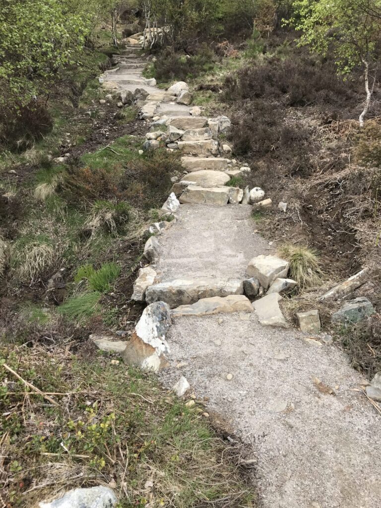 The surfacing material (quarry dust) has made a significant difference to the finish of the path – eliminating many muddy spots and stabilising sections of path which had been left with loose stones over the winter.