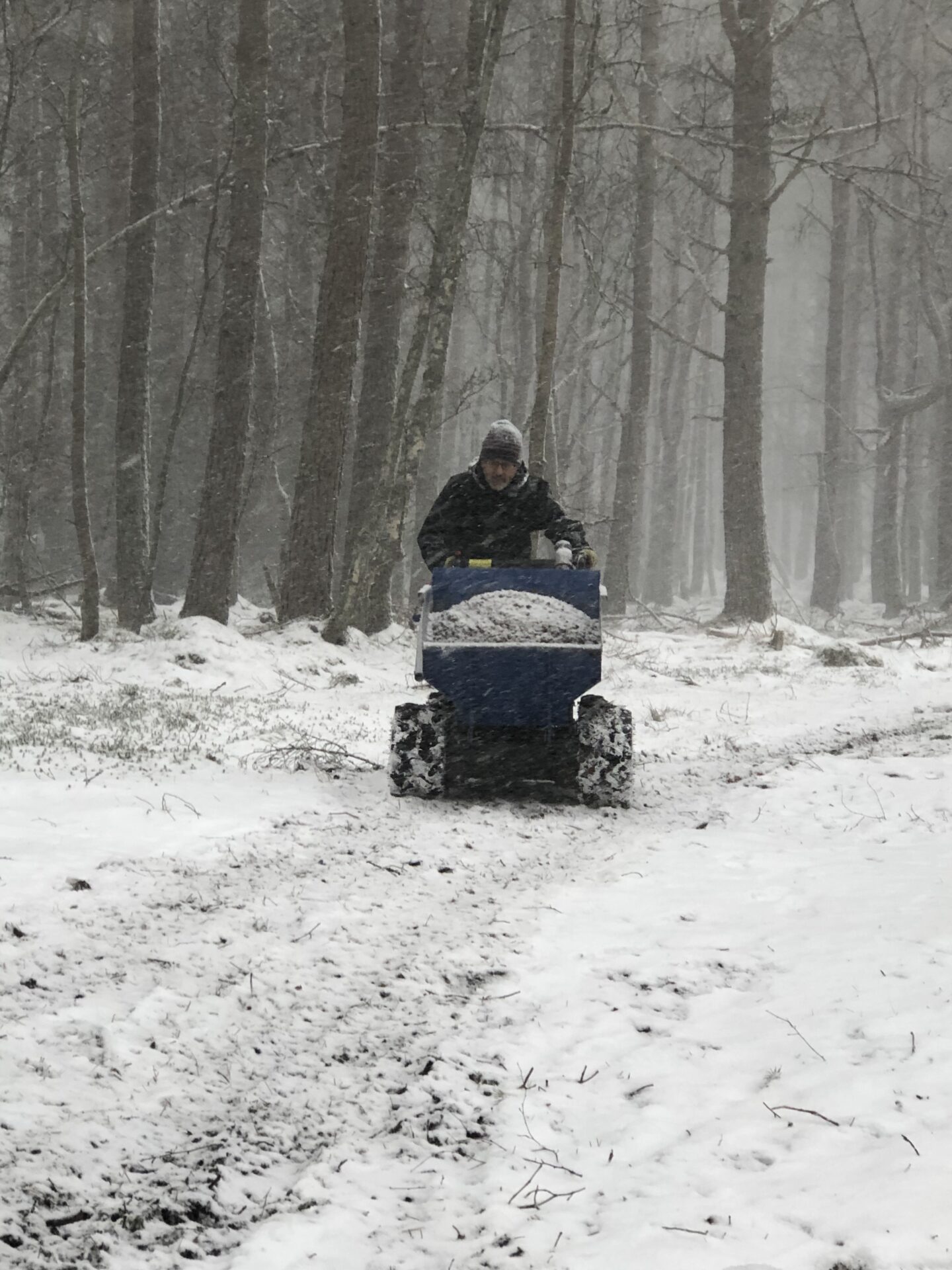We had a 20 ton “drop” of Type 1 aggregate delivered to Tom Baraidh and the team have been hard at work improving the paths that surround Harry Grant’s Bench that overlooks the golf course. This section rarely gets the sun and generally suffers from very muddy ground – resulting in paths getting wider and muddier.
